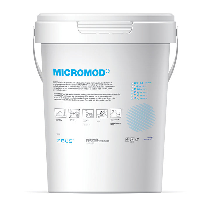 MICROMOD è un gesso naturale extraduro tissotropico di prima qualità. Caratterizzato da un’alta scorrevolezza sotto vibrazione, MICROMOD permette soprattutto di riprodurre fedelmente tutti i dettagli dell’impronta. Le caratteristiche di bassa espansione, l’elevata durezza superficiale e la compatibilità con tutti i materiali da impronta inoltre, lo rendono un prodotto molto versatile, ideale per molteplici utilizzi.